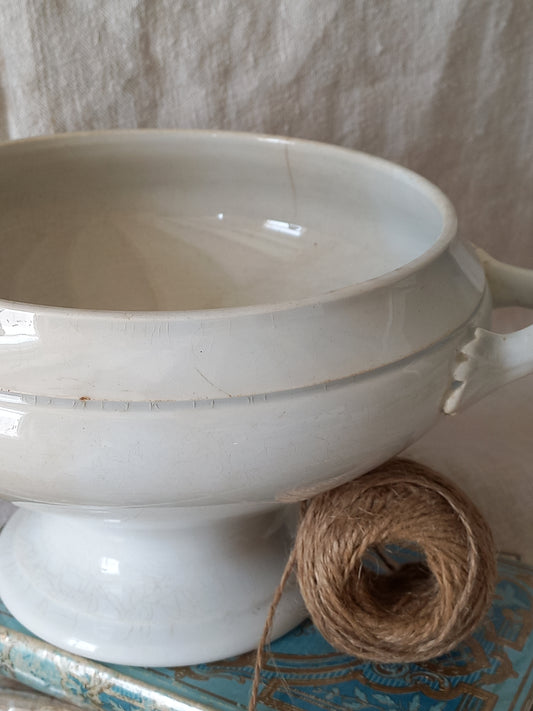 Small French Antique White Ironstone Lidless Tureen Bowl
