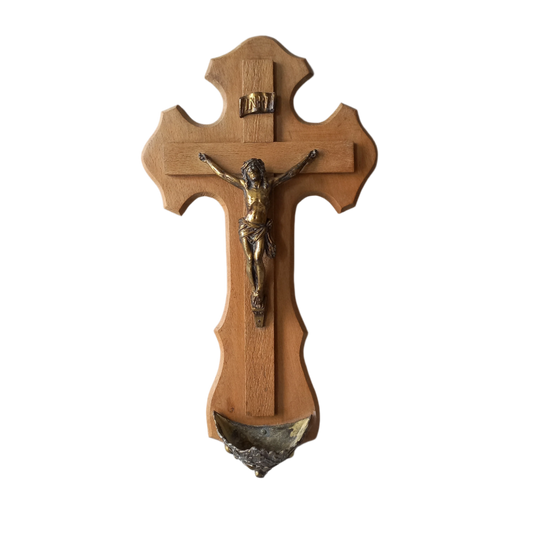 Large vintage Jesus Christ crucifix with Holy Water font from France