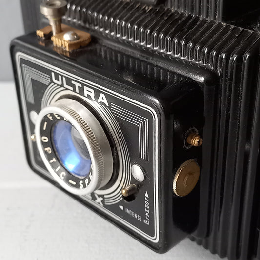 Appareil photo du milieu du siècle avec boîtier en bakélite et style art déco de France, appareil photo vintage Ultra Fex