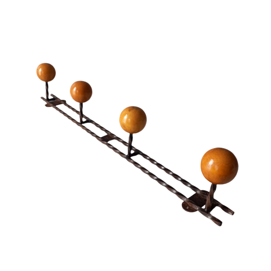 Porte-manteau vintage en métal avec quatre crochets en bois, porte-manteau français à 4 crochets, décoration murale rustique pour maison de campagne