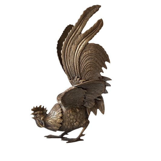 Figurines d'oiseaux coqs en métal vintage