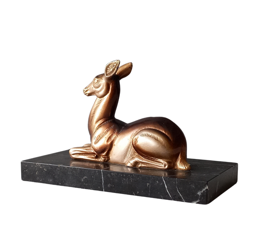 Ornement de cerf vintage sur un socle en marbre, décor de bureau art déco