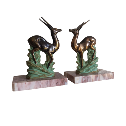Serre-livres vintage avec figurines en métal de cerf, d'antilope, de gazelle de France, range-livres, étagère et décoration de bureau