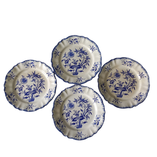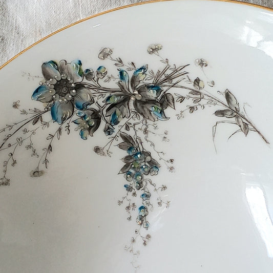 Assiettes anciennes en grès blanc à motifs floraux bleus de France