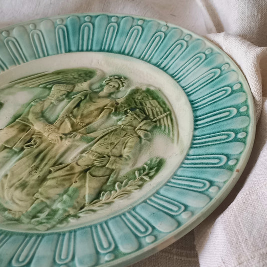 Assiette militaire décorative en majolique ancienne, alliance franco-russe