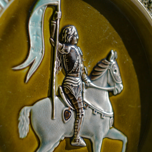 Grande assiette vintage en majolique française Jeanne d'Arc, décoration murale Jeanne D'Arc