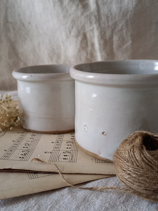 Pair of French Antique Ironstone Jam Pots Or Crock Pots