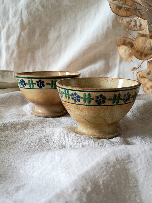 Pair Small French Vintage Cafe Au Lait Bowls, Ironstone, Rustic Farmhouse Kitchen Decor