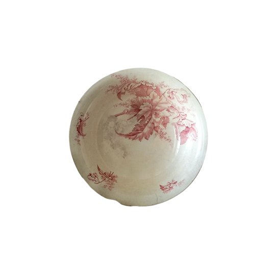 Grand bol en grès à motif floral rose, vasque shabby chic