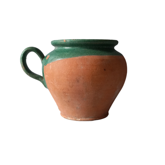 Petite cruche vintage en faïence française avec intérieur émaillé vert
