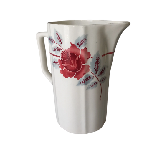 GRAND pichet ou pichet floral vintage en terre de fer de France
