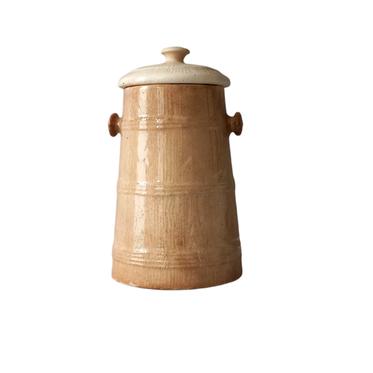 Pot à conserves ou marmite antique en terre cuite teintée au thé et fabriquée par Creil et Montereau