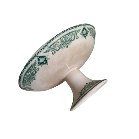 Compotier ou plat à gâteau sur pied en pierre de fer antique français avec motif floral bleu sarcelle, plat à fruits décoratif, plat à gâteaux