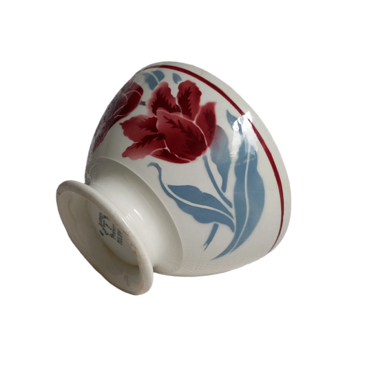Soupière ou bol antique en terre cuite avec motif floral bleu sarcelle de France, décoration de maison de campagne