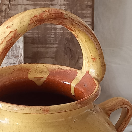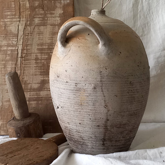 Grand pot à huile ou à eau en poterie vintage française, pot à huile en grès fait à la main, décoration de ferme rustique