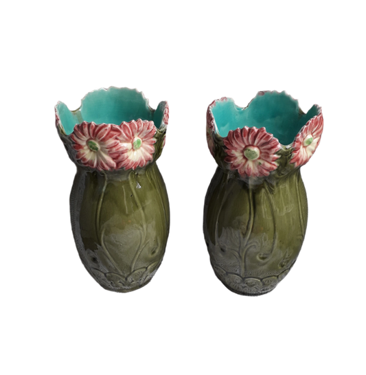 Paire de vases en majolique vintage français, vases décoratifs, décoration de maison de campagne