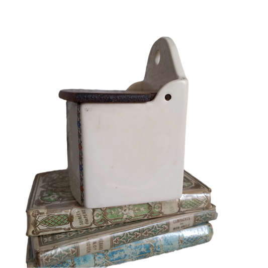 Salière vintage française en céramique avec couvercle en bois, décoration de cuisine et rangement