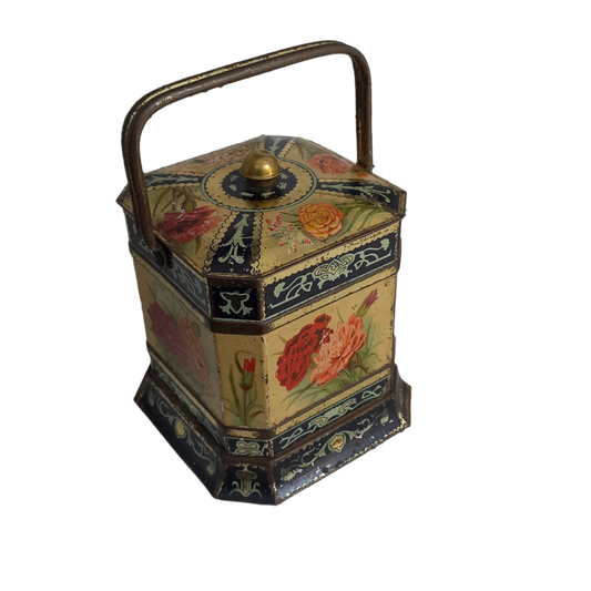 Grand pichet ancien en métal émaillé de couleur crème avec bordure dorée de France