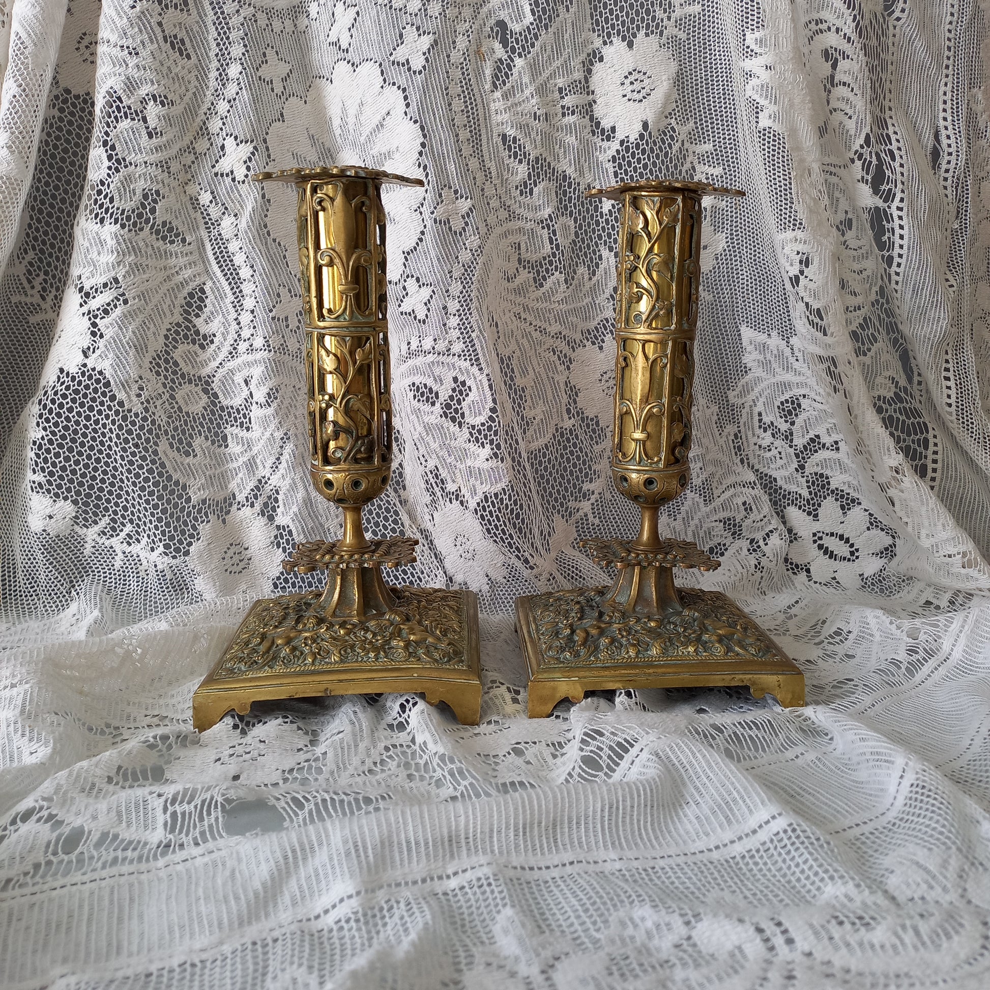Bougeoirs anciens en laiton de France, candélabres décoratifs