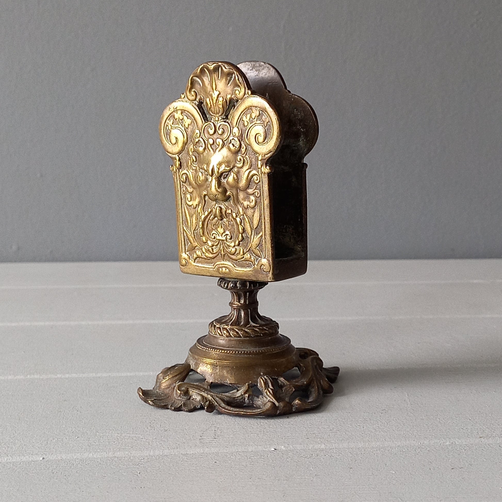 Support de boîte d'allumettes antique en laiton, décor de bureau en bronze