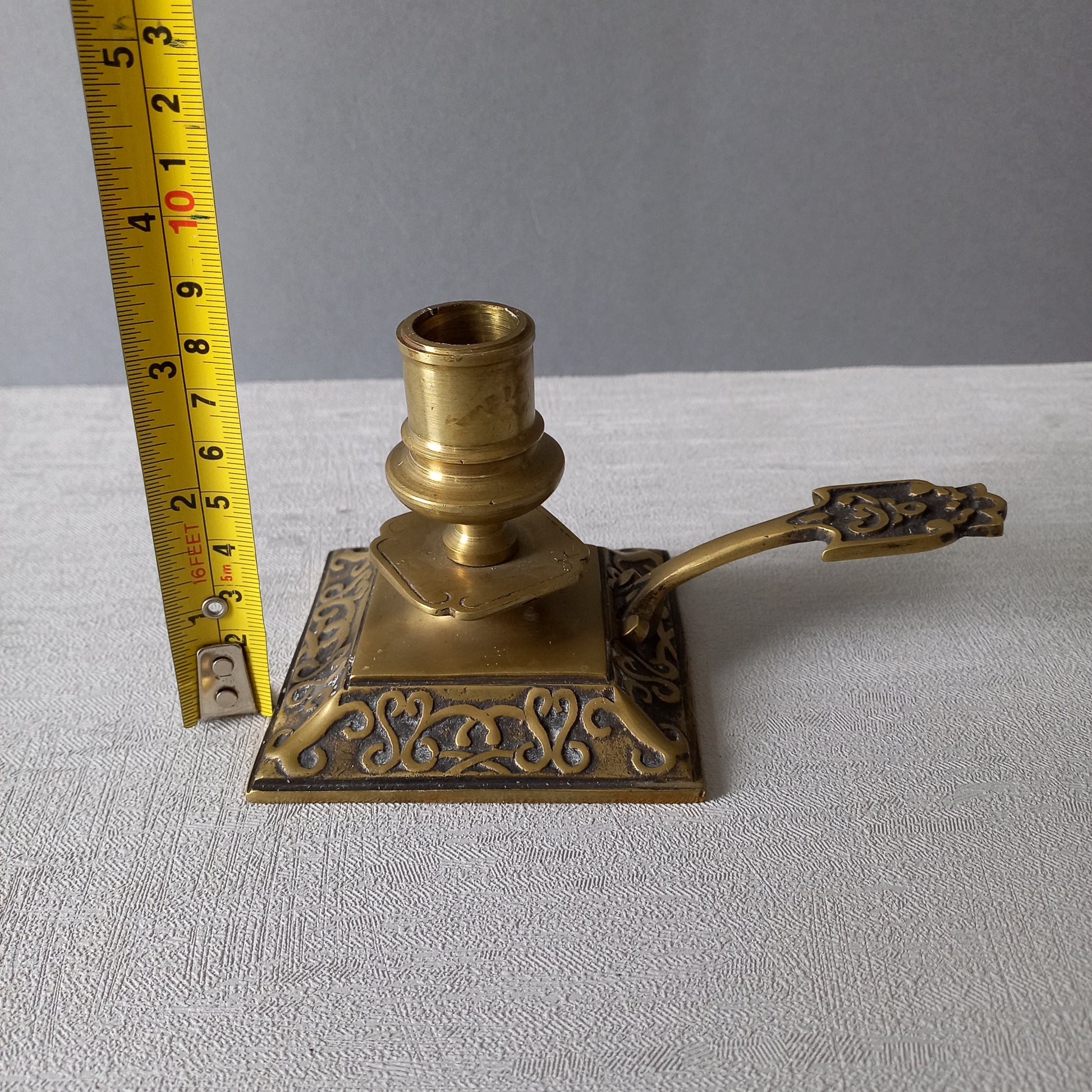 Un petit bâton de chambre français vintage ou antique en laiton, une pièce de qualité avec une décoration ornée et pour sa taille et un bon poids solide.