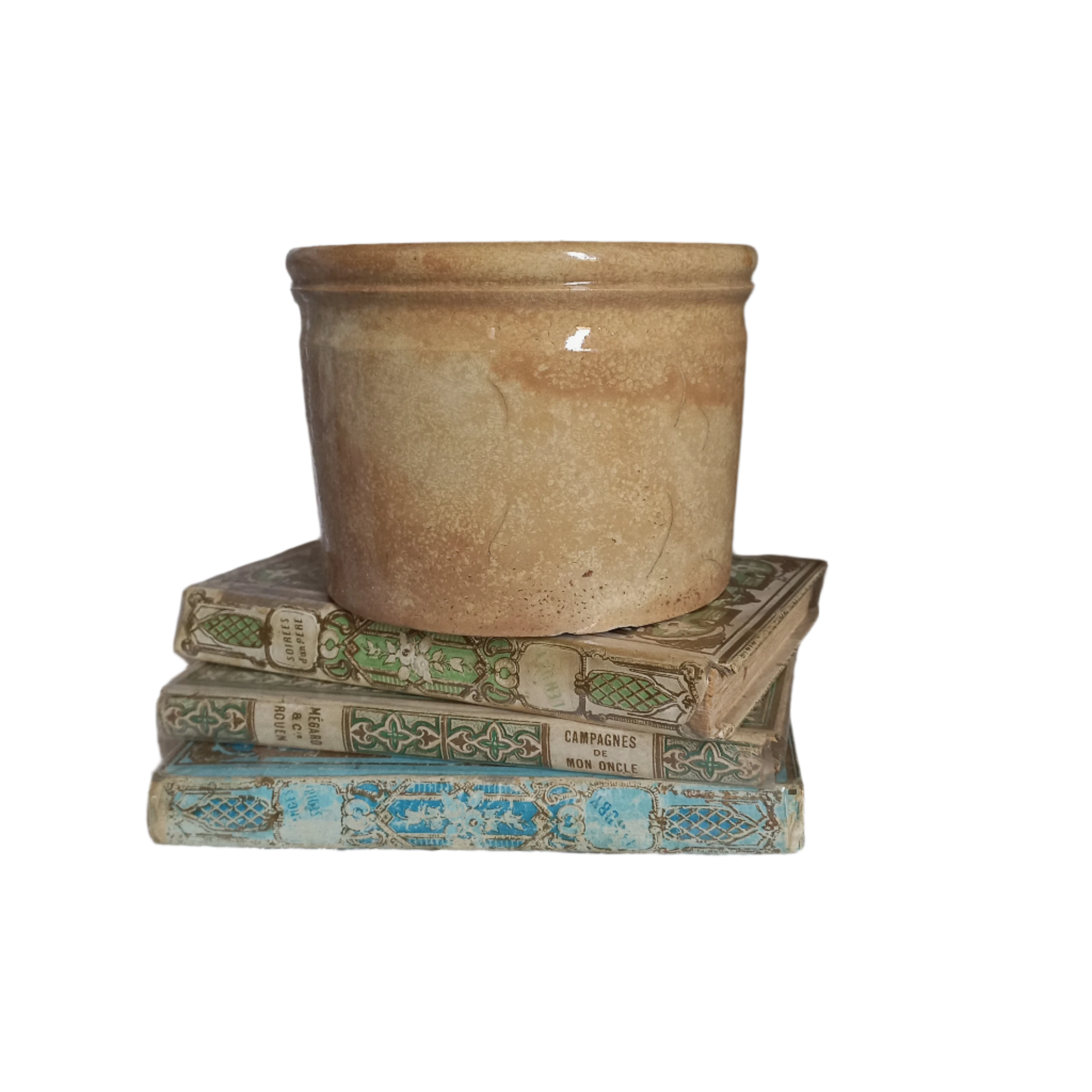 Mijoteuse en terre cuite avec finition tachée de thé et usée par le temps de France, mijoteuse ancienne