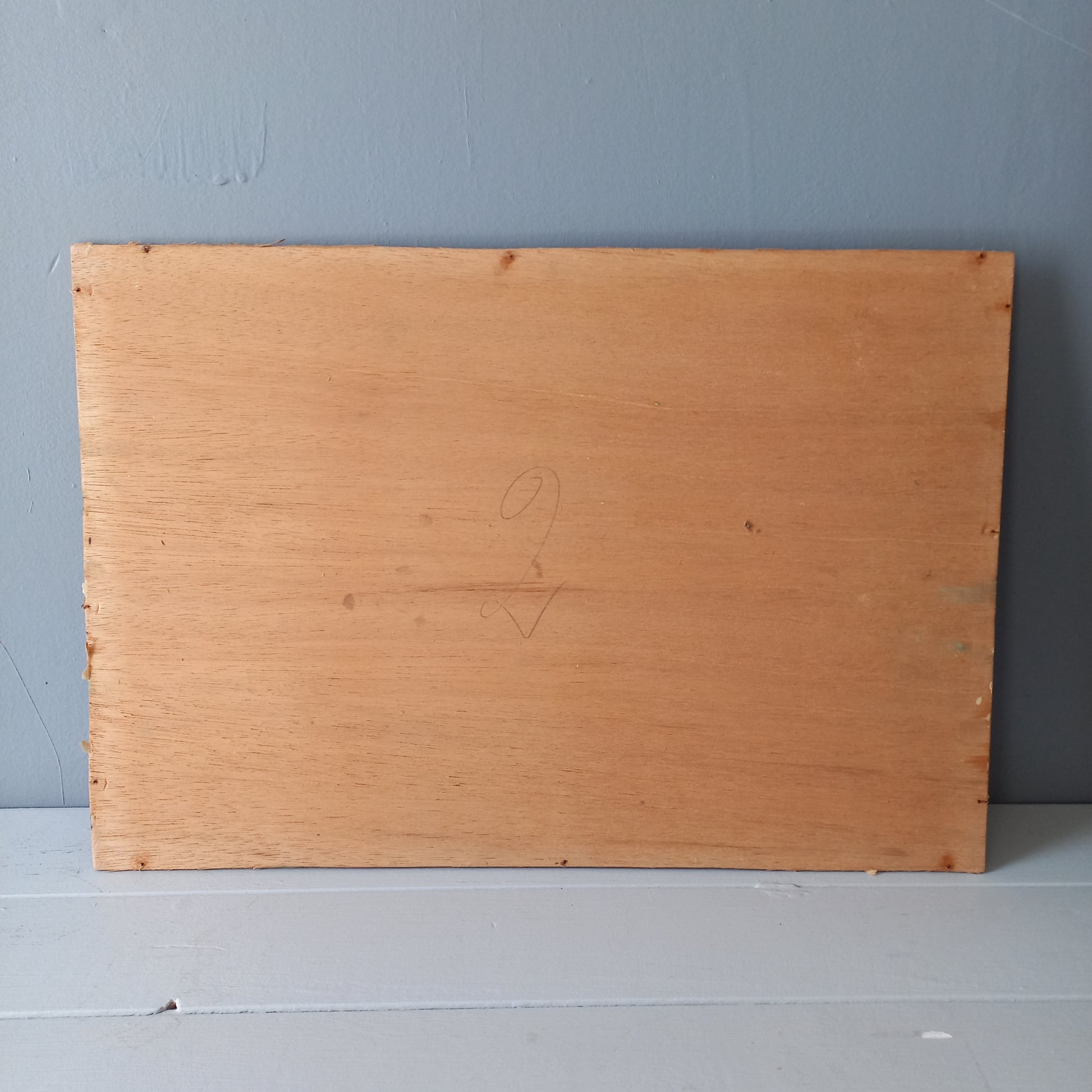État : bon état vintage d'occasion avec l'usure attendue liée à l'âge sur les bords de la planche là où elle a été à l'intérieur d'un cadre (zones propres autour des bords et quelques bords plus nets sur le bois).