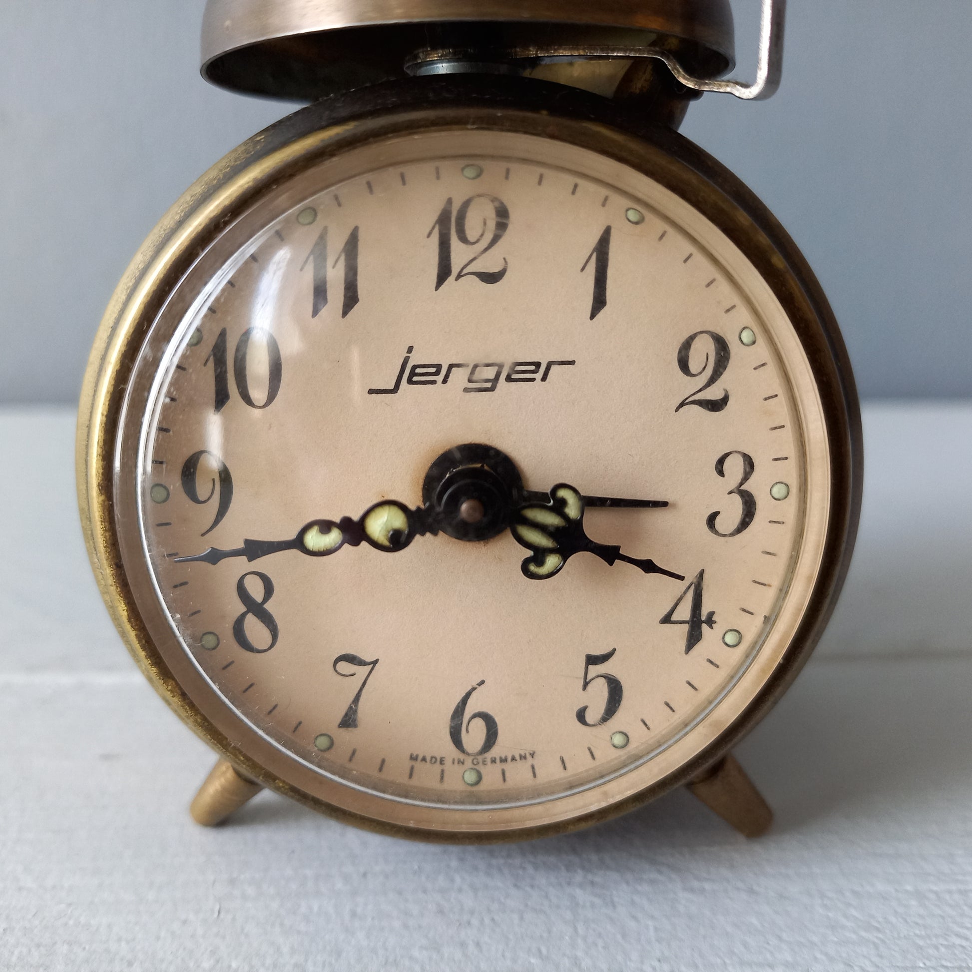 Réveil vintage de Jerger d'Allemagne, horloge mécanique miniature