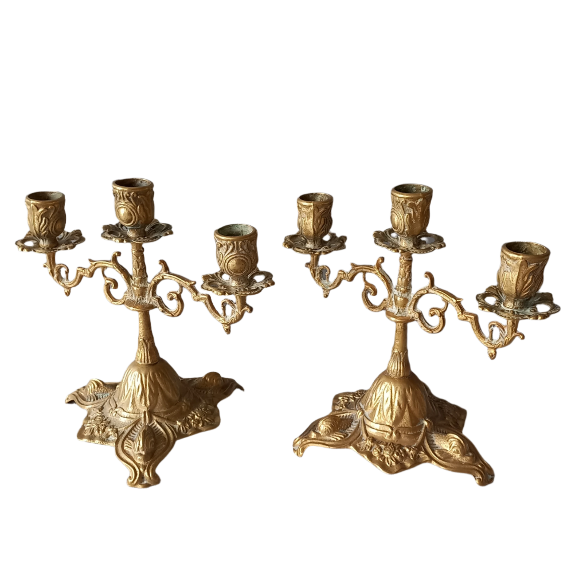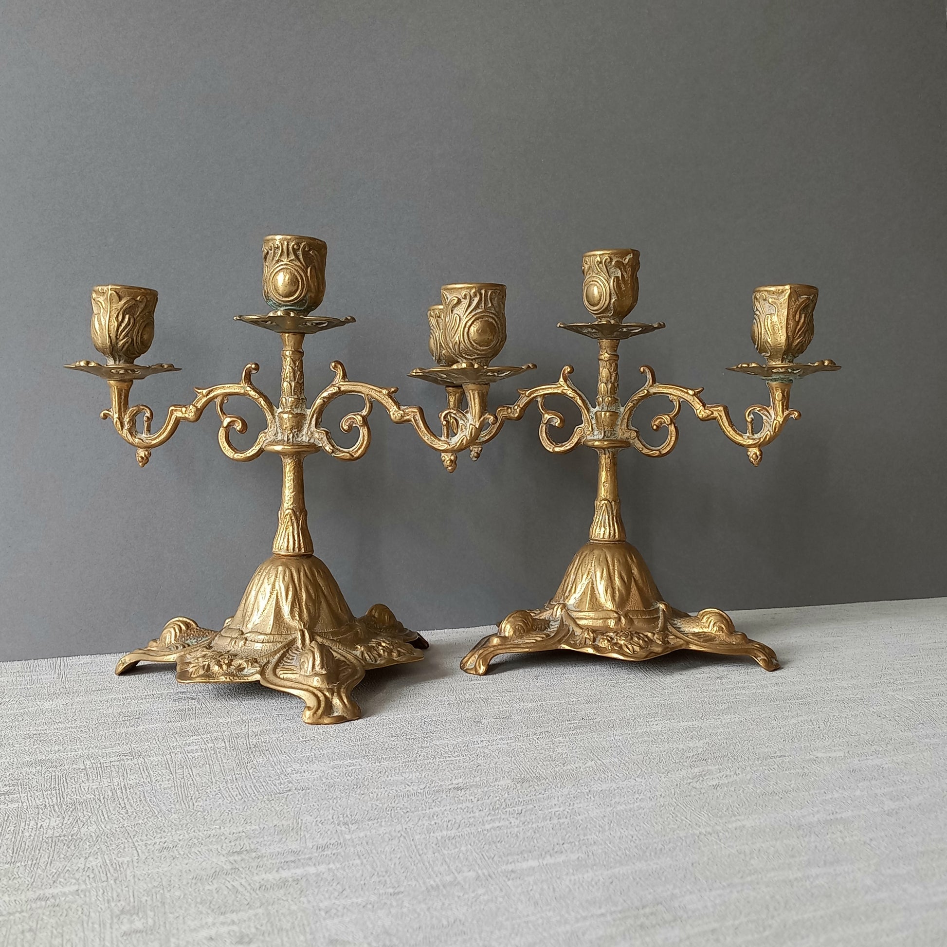 Bougeoirs vintage en laiton/bronze, paire de candélabres français